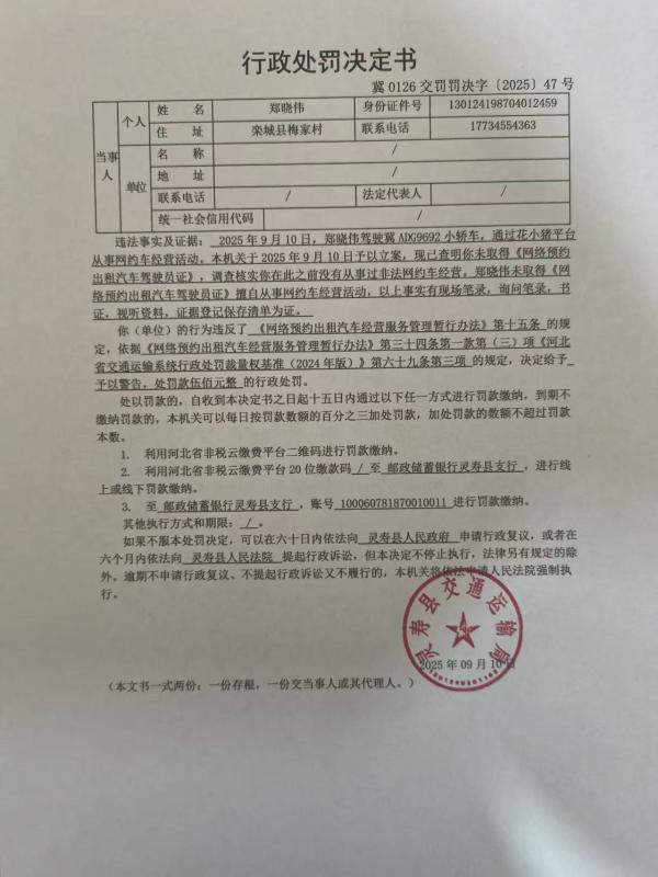 灵寿县交通运输局行政处罚决定书冀0126交罚罚决字〔2025〕47号