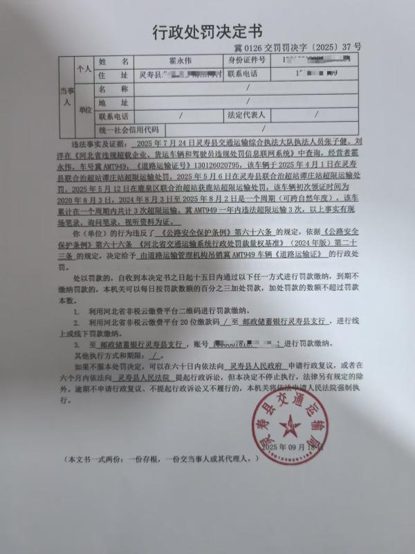 灵寿县交通运输局行政处罚决定书冀0126交罚罚决字〔2025〕37号