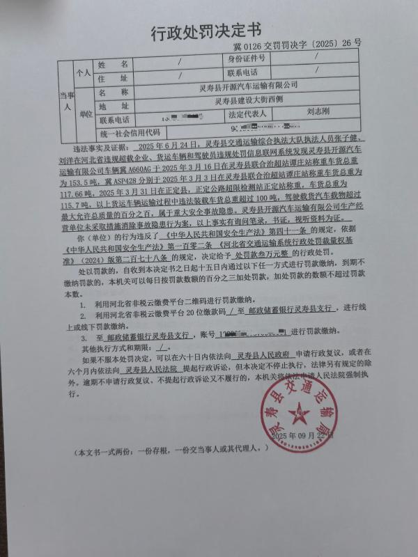 灵寿县交通运输局行政处罚决定书冀0126交罚罚决字〔2025〕26号
