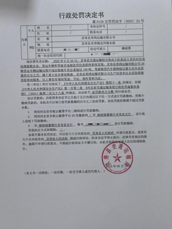 灵寿县交通运输局行政处罚决定书冀0126交罚罚决字〔2025〕24号