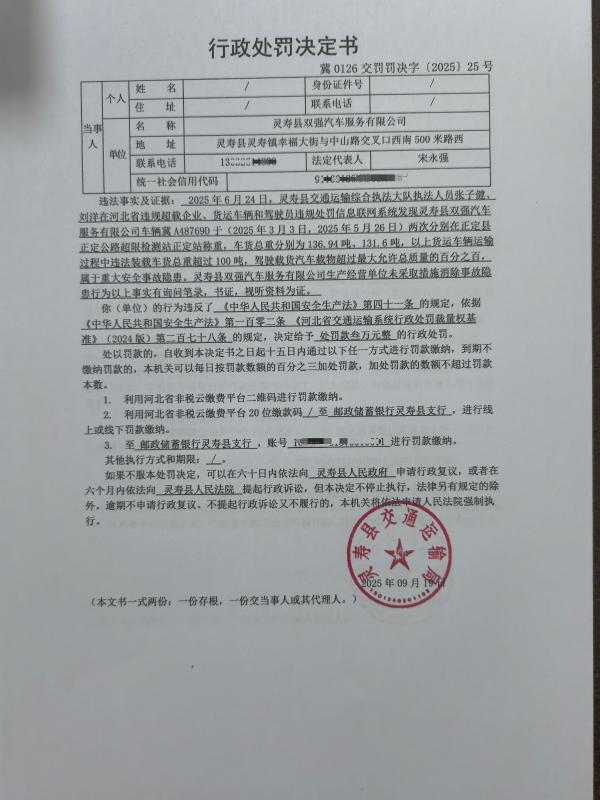 灵寿县交通运输局行政处罚决定书冀0126交罚罚决字〔2025〕25号