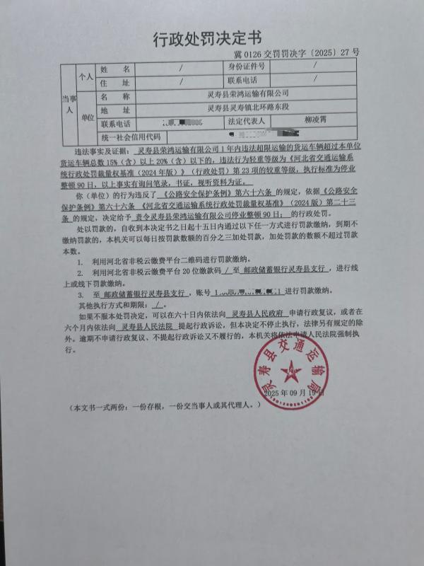 灵寿县交通运输局行政处罚决定书冀0126交罚罚决字〔2025〕27号