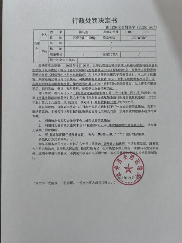 灵寿县交通运输局行政处罚决定书冀0126交罚罚决字〔2025〕54号