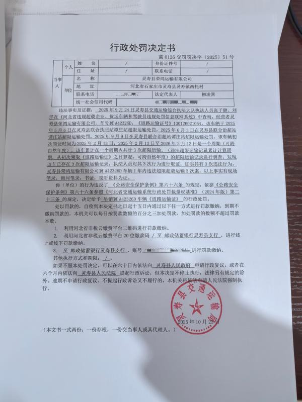 灵寿县交通运输局行政处罚决定书冀0126交罚罚决字〔2025〕51号