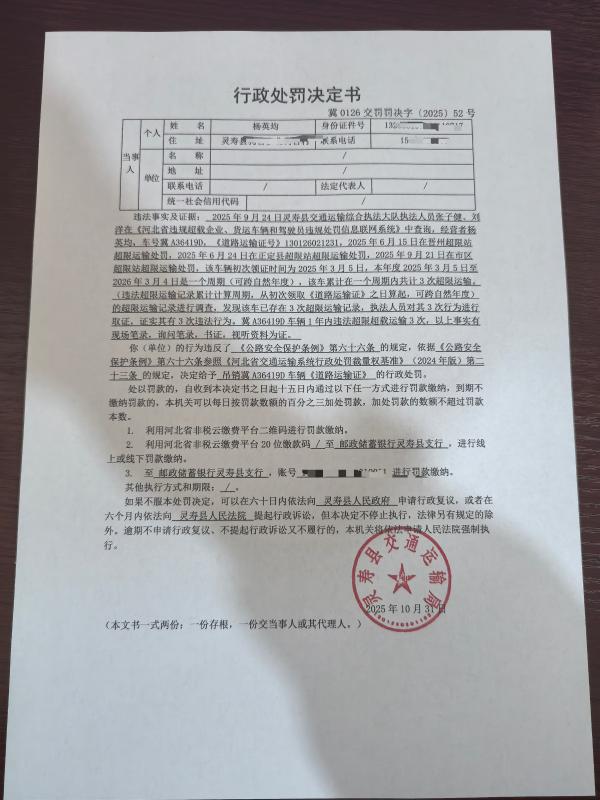 灵寿县交通运输局行政处罚决定书冀0126交罚罚决字〔2025〕52号