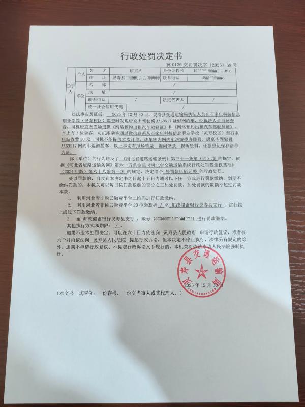 灵寿县交通运输局行政处罚决定书冀0126交罚罚决字〔2025〕59号
