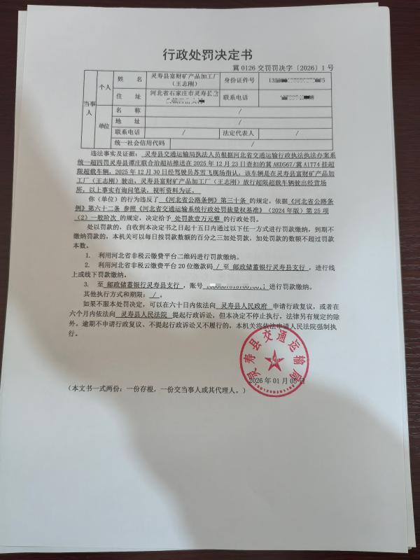 灵寿县交通运输局行政处罚决定书冀0126交罚罚决字〔2026〕1号