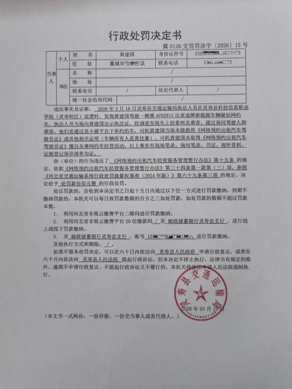灵寿县交通运输局行政处罚决定书冀0126交罚罚决字〔2026〕15号
