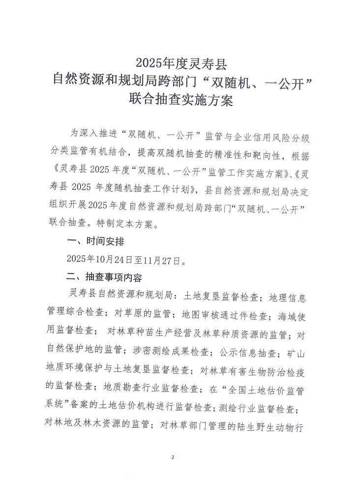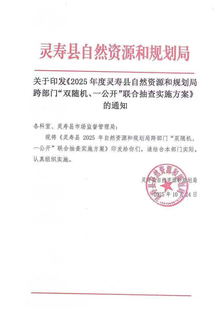 关于印发《2025年度灵寿县自然资源和规划局跨部门“双随机、一公开”联合抽查实施方案》的通知