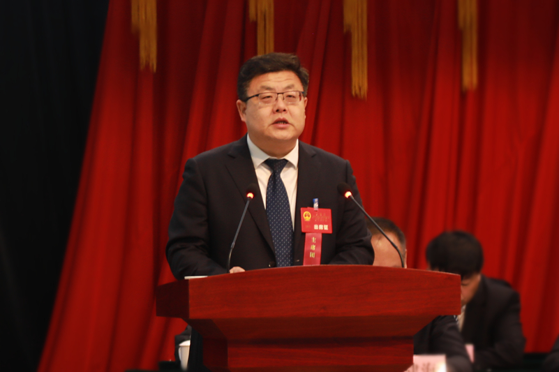 县长胡万程代表县政府向大会作政府工作报告。报告分三个部分:一、2024年工作回顾;二、2025年主要任务和工作举措;三、加强政府自身建设。