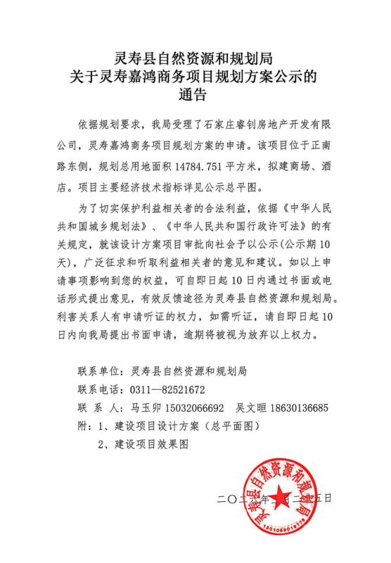 关于灵寿嘉鸿商务项目规划方案公示的通告