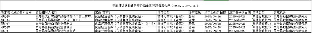 灵寿县数据和政务服务局食品经营备案公示(2025.9.26-9.29)