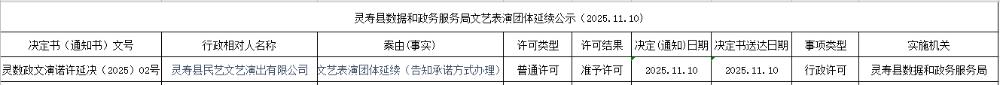 灵寿县数据和政务服务局文艺表演团体延续公示(2025.11.10)
