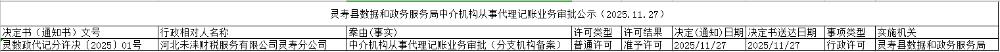 灵寿县数据和政务服务局中介机构从事代理记账业务审批公示(2025.11.27)