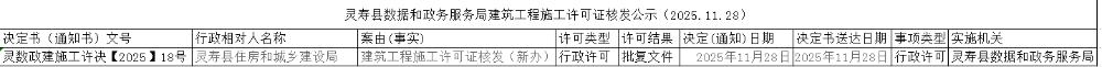 灵寿县数据和政务服务局建筑工程施工许可证核发公示(2025.11.28)