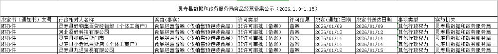 灵寿县数据和政务服务局食品经营备案公示(2026.1.9-1.15)