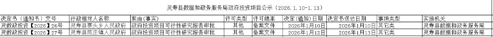 灵寿县数据和政务服务局政府投资项目公示(2026.1.10-1.13)