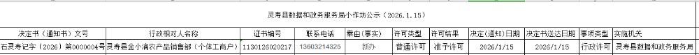 灵寿县数据和政务服务局小作坊公示(2026.1.15)