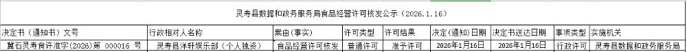 灵寿县数据和政务服务局食品经营许可核发公示(2026.1.16)