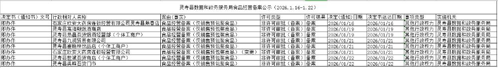 灵寿县数据和政务服务局食品经营备案公示(2026.1.16-1.22)
