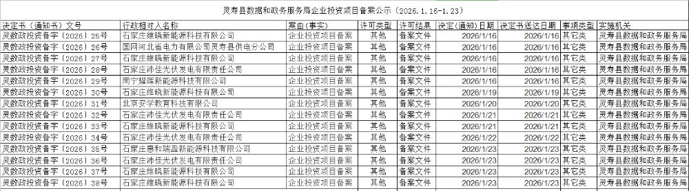灵寿县数据和政务服务局企业投资项目备案公示(2026.1.16-1.23)