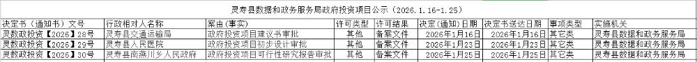 灵寿县数据和政务服务局政府投资项目公示(2026.1.16-1.25)