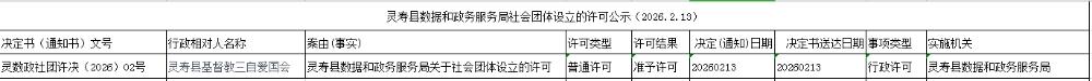 灵寿县数据和政务服务局社会团体设立的许可公示(2026.2.13)