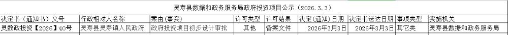 灵寿县数据和政务服务局政府投资项目公示(2026.3.3)