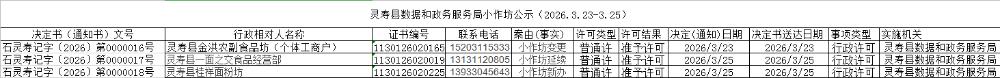 灵寿县数据和政务服务局小作坊公示(2026.3.23-3.25)