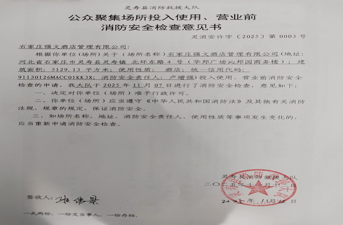 灵寿县消防救援大队行政许可公示 灵消安许字【2025】第0003号