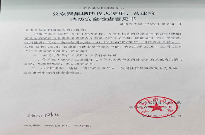 灵寿县消防救援大队行政许可公示 灵消安许字【2026】第0001号