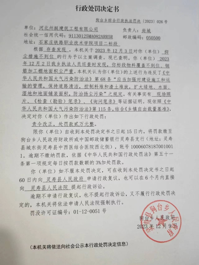 狗台乡综合行政执法罚决【2023】026号