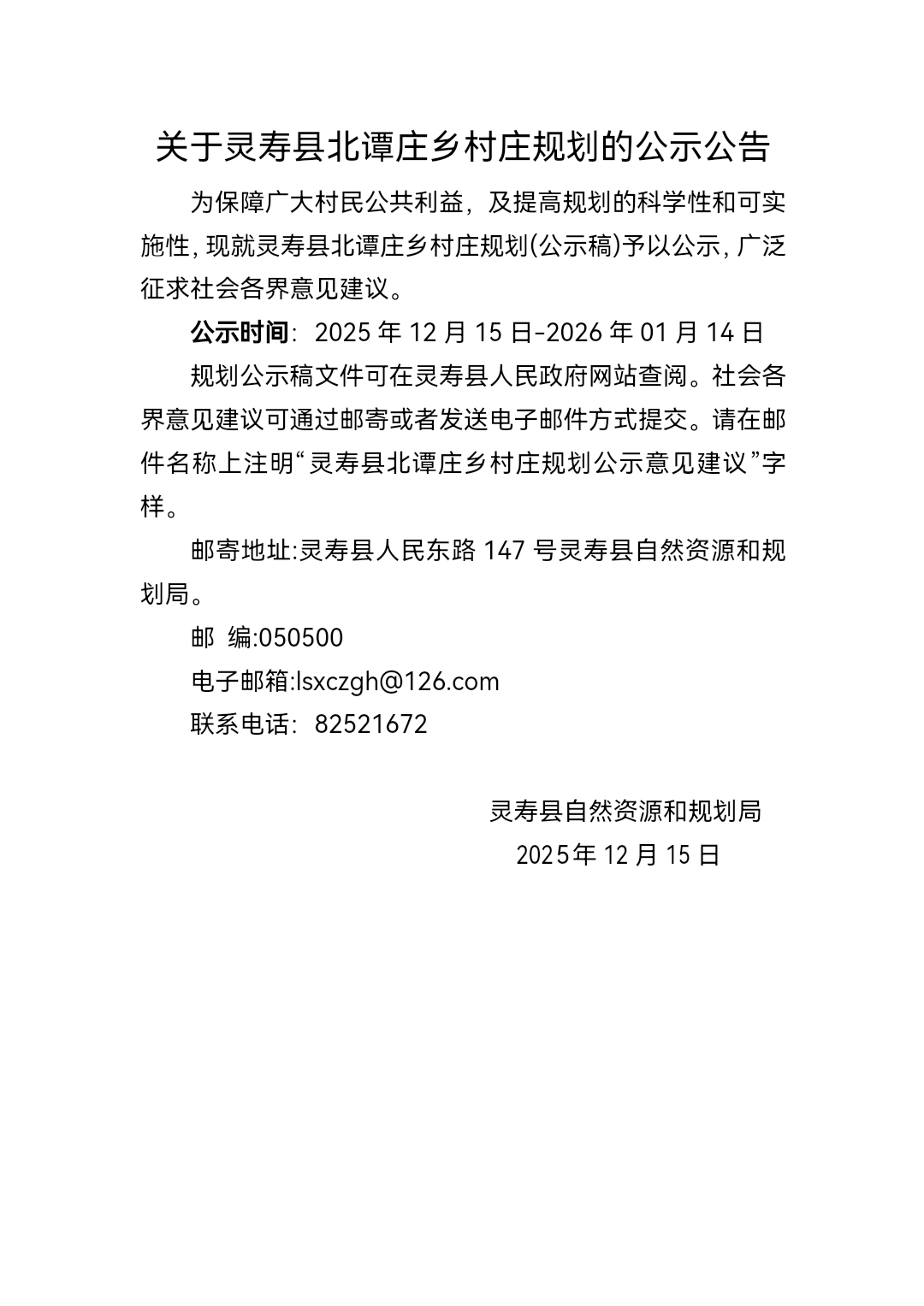 关于灵寿县北谭庄乡村庄规划的公示公告(征求意见)